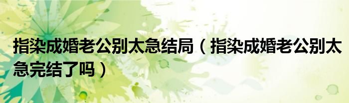 大家好,小生來為大家講解下。指染成婚老公別太急結局,指染成婚老公別太急完結了嗎很多人還不知道,現(xiàn)在讓我們一起來看看吧!