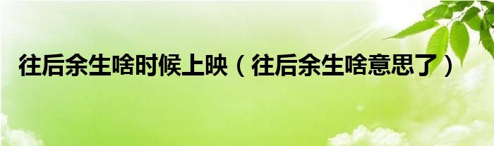 大家好,小生來(lái)為大家講解下。往后余生啥時(shí)候上映,往后余生啥意思了很多人還不知道,現(xiàn)在讓我們一起來(lái)看看吧!