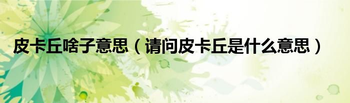 大家好,小生來為大家講解下。皮卡丘啥子意思,請問皮卡丘是什么意思很多人還不知道,現(xiàn)在讓我們一起來看看吧!