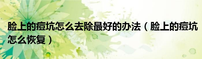 摘要大家好,知識(shí)小編來為大家解答以上的問題。臉上的痘坑怎么去除最好的辦法,臉上的痘坑怎么恢復(fù)很多人還不知道,現(xiàn)在讓我們一起來看看吧!痘