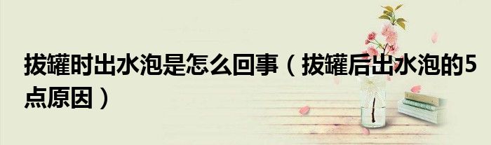 摘要大家好,知識小編來為大家解答以上的問題。拔罐時(shí)出水泡是怎么回事,拔罐后出水泡的5點(diǎn)原因很多人還不知道,現(xiàn)在讓我們一起來看看吧!拔罐