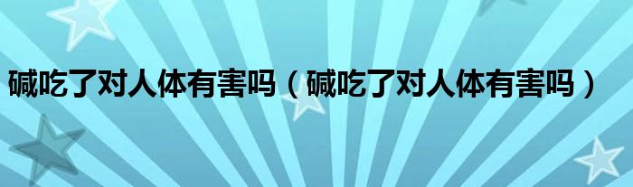 摘要大家好,知識小編來為大家解答以上的問題。堿吃了對人體有害嗎,堿吃了對人體有害嗎很多人還不知道,現(xiàn)在讓我們一起來看看吧!吃堿對人體無