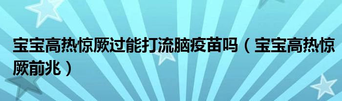 大家好,知識小編來為大家解答以上的問題。寶寶高熱驚厥過能打流腦疫苗嗎,寶寶高熱驚厥前兆很多人還不知道,現(xiàn)在讓我們一起來看看吧!