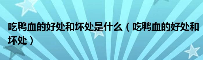 摘要大家好,知識(shí)小編來(lái)為大家解答以上的問(wèn)題。吃鴨血的好處和壞處是什么,吃鴨血的好處和壞處很多人還不知道,現(xiàn)在讓我們一起來(lái)看看吧!吃鴨血