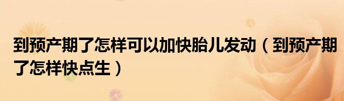 大家好,知識(shí)小編來(lái)為大家解答以上的問(wèn)題。到預(yù)產(chǎn)期了怎樣可以加快胎兒發(fā)動(dòng),到預(yù)產(chǎn)期了怎樣快點(diǎn)生很多人還不知道,現(xiàn)在讓我們一起來(lái)看看吧!