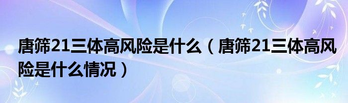 大家好,知識小編來為大家解答以上的問題。唐篩21三體高風(fēng)險是什么,唐篩21三體高風(fēng)險是什么情況很多人還不知道,現(xiàn)在讓我們一起來看看吧!