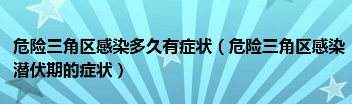 大家好,知識(shí)小編來為大家解答以上的問題。危險(xiǎn)三角區(qū)感染多久有癥狀,危險(xiǎn)三角區(qū)感染潛伏期的癥狀很多人還不知道,現(xiàn)在讓我們一起來看看吧!