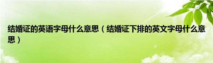 大家好,小生來為大家講解下。結(jié)婚證的英語字母什么意思,結(jié)婚證下排的英文字母什么意思很多人還不知道,現(xiàn)在讓我們一起來看看吧!