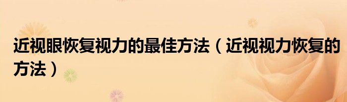 摘要大家好,知識(shí)小編來為大家解答以上的問題。近視眼恢復(fù)視力的最佳方法,近視視力恢復(fù)的方法很多人還不知道,現(xiàn)在讓我們一起來看看吧!在近視
