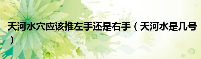 大家好,小生來(lái)為大家講解下。天河水穴應(yīng)該推左手還是右手,天河水是幾號(hào)很多人還不知道,現(xiàn)在讓我們一起來(lái)看看吧!