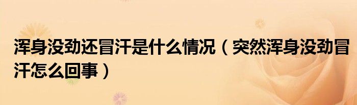 摘要大家好,知識小編來為大家解答以上的問題。渾身沒勁還冒汗是什么情況,突然渾身沒勁冒汗怎么回事很多人還不知道,現(xiàn)在讓我們一起來看看吧!