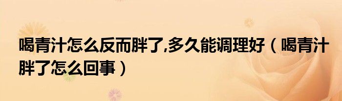 大家好,知識(shí)小編來為大家解答以上的問題。喝青汁怎么反而胖了,多久能調(diào)理好,喝青汁胖了怎么回事很多人還不知道,現(xiàn)在讓我們一起來看看吧!