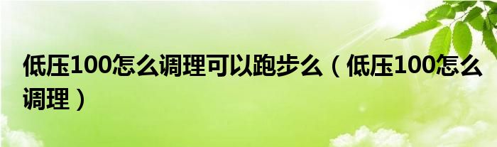 大家好,知識(shí)小編來為大家解答以上的問題。低壓100怎么調(diào)理可以跑步么,低壓100怎么調(diào)理很多人還不知道,現(xiàn)在讓我們一起來看看吧!