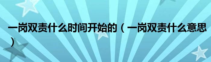 大家好,小生來為大家講解下。一崗雙責(zé)什么時間開始的,一崗雙責(zé)什么意思很多人還不知道,現(xiàn)在讓我們一起來看看吧!