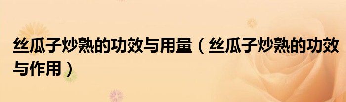大家好,知識(shí)小編來(lái)為大家解答以上的問(wèn)題。絲瓜子炒熟的功效與用量,絲瓜子炒熟的功效與作用很多人還不知道,現(xiàn)在讓我們一起來(lái)看看吧!