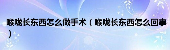 大家好,知識小編來為大家解答以上的問題。喉嚨長東西怎么做手術(shù),喉嚨長東西怎么回事很多人還不知道,現(xiàn)在讓我們一起來看看吧!
