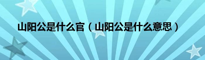 大家好,小生來(lái)為大家講解下。山陽(yáng)公是什么官,山陽(yáng)公是什么意思很多人還不知道,現(xiàn)在讓我們一起來(lái)看看吧!