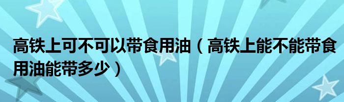 大家好,小生來為大家講解下。高鐵上可不可以帶食用油,高鐵上能不能帶食用油能帶多少很多人還不知道,現(xiàn)在讓我們一起來看看吧!