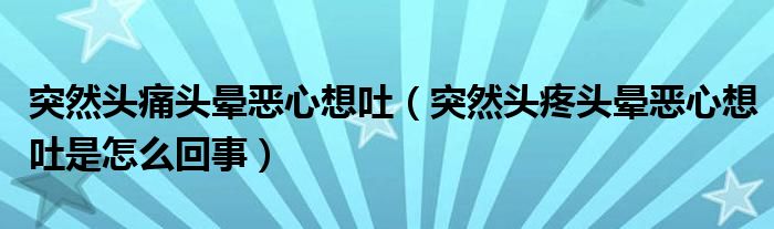 大家好,知識(shí)小編來(lái)為大家解答以上的問(wèn)題。突然頭痛頭暈惡心想吐,突然頭疼頭暈惡心想吐是怎么回事很多人還不知道,現(xiàn)在讓我們一起來(lái)看看吧!