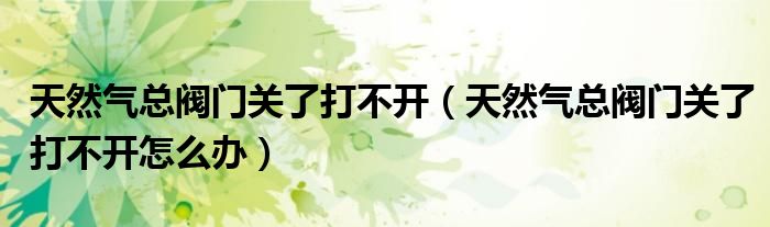 大家好,小生來為大家講解下。天然氣總閥門關(guān)了打不開,天然氣總閥門關(guān)了打不開怎么辦很多人還不知道,現(xiàn)在讓我們一起來看看吧!