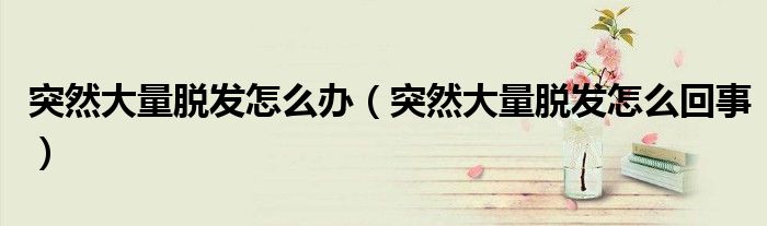 大家好,知識(shí)小編來為大家解答以上的問題。突然大量脫發(fā)怎么辦,突然大量脫發(fā)怎么回事很多人還不知道,現(xiàn)在讓我們一起來看看吧!