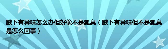 大家好,知識小編來為大家解答以上的問題。腋下有異味怎么辦但好像不是狐臭,腋下有異味但不是狐臭是怎么回事很多人還不知道,現(xiàn)在讓我們一起來看看吧!