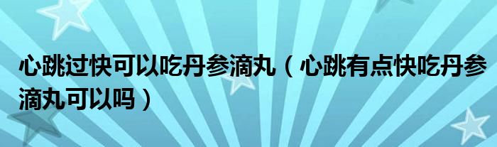 摘要大家好,知識(shí)小編來為大家解答以上的問題。心跳過快可以吃丹參滴丸,心跳有點(diǎn)快吃丹參滴丸可以嗎很多人還不知道,現(xiàn)在讓我們一起來看看吧!