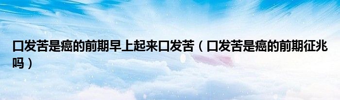 摘要大家好,知識(shí)小編來(lái)為大家解答以上的問(wèn)題??诎l(fā)苦是癌的前期早上起來(lái)口發(fā)苦,口發(fā)苦是癌的前期征兆嗎很多人還不知道,現(xiàn)在讓我們一起來(lái)看看