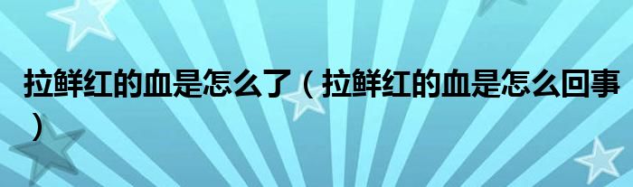 大家好,知識(shí)小編來為大家解答以上的問題。拉鮮紅的血是怎么了,拉鮮紅的血是怎么回事很多人還不知道,現(xiàn)在讓我們一起來看看吧!