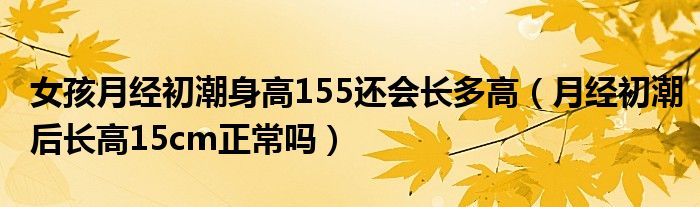 大家好,知識(shí)小編來(lái)為大家解答以上的問(wèn)題。女孩月經(jīng)初潮身高155還會(huì)長(zhǎng)多高,月經(jīng)初潮后長(zhǎng)高15cm正常嗎很多人還不知道,現(xiàn)在讓我們一起來(lái)看看吧!