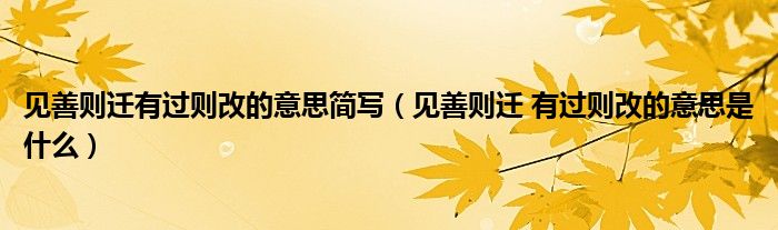 摘要 大家好,小生來為大家講解下。見善則遷有過則改的意思簡(jiǎn)寫,見善則遷 有過則改的意思是什么很多人還不知道,現(xiàn)在讓我們一起來看看吧!1、