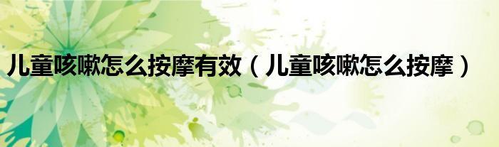 大家好,知識小編來為大家解答以上的問題。兒童咳嗽怎么按摩有效,兒童咳嗽怎么按摩很多人還不知道,現(xiàn)在讓我們一起來看看吧!