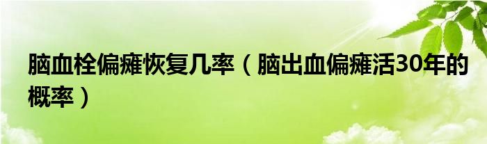 大家好,知識小編來為大家解答以上的問題。腦血栓偏癱恢復(fù)幾率,腦出血偏癱活30年的概率很多人還不知道,現(xiàn)在讓我們一起來看看吧!