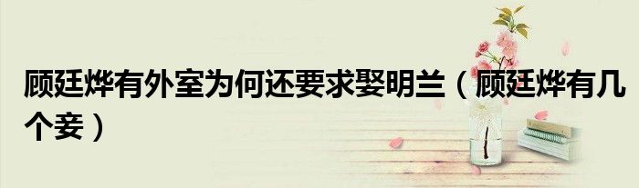 大家好,小生來為大家講解下。顧廷燁有外室為何還要求娶明蘭,顧廷燁有幾個(gè)妾很多人還不知道,現(xiàn)在讓我們一起來看看吧!
