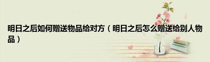 大家好,小生來為大家講解下。明日之后如何贈送物品給對方,明日之后怎么贈送給別人物品很多人還不知道,現(xiàn)在讓我們一起來看看吧!