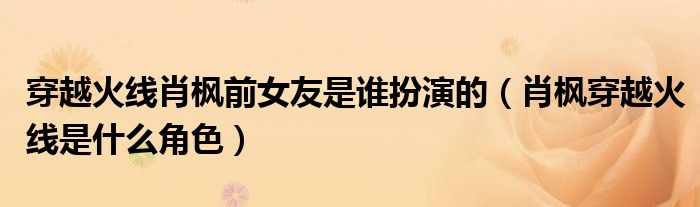 摘要大家好,小生來為大家講解下。穿越火線肖楓前女友是誰扮演的,肖楓穿越火線是什么角色很多人還不知道,現(xiàn)在讓我們一起來看看吧!1、馮曉是
