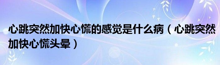 大家好,知識小編來為大家解答以上的問題。心跳突然加快心慌的感覺是什么病,心跳突然加快心慌頭暈很多人還不知道,現(xiàn)在讓我們一起來看看吧!