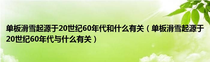 大家好,小生來(lái)為大家講解下。單板滑雪起源于20世紀(jì)60年代和什么有關(guān),單板滑雪起源于20世紀(jì)60年代與什么有關(guān)很多人還不知道,現(xiàn)在讓我們一起來(lái)看看吧!