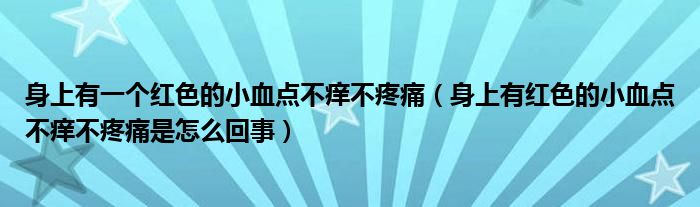 大家好,知識小編來為大家解答以上的問題。身上有一個紅色的小血點不癢不疼痛,身上有紅色的小血點不癢不疼痛是怎么回事很多人還不知道,現(xiàn)在讓我們一起來看看吧!