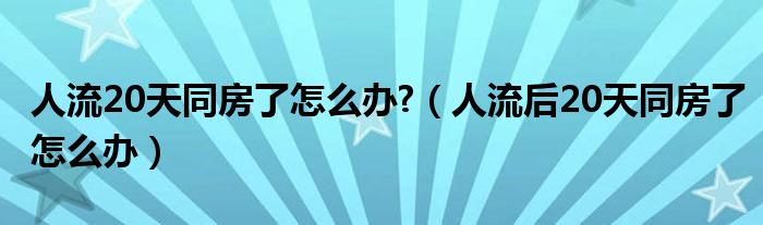 摘要大家好,知識小編來為大家解答以上的問題。人流20天同房了怎么辦?,人流后20天同房了怎么辦很多人還不知道,現(xiàn)在讓我們一起來看看吧!如果