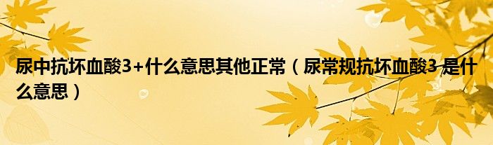 大家好,知識小編來為大家解答以上的問題。尿中抗壞血酸3+什么意思其他正常,尿常規(guī)抗壞血酸3 是什么意思很多人還不知道,現(xiàn)在讓我們一起來看看吧!