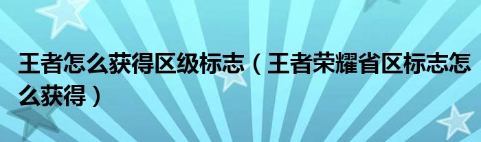 大家好,小生來為大家講解下。王者怎么獲得區(qū)級(jí)標(biāo)志,王者榮耀省區(qū)標(biāo)志怎么獲得很多人還不知道,現(xiàn)在讓我們一起來看看吧!