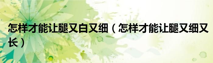 大家好,知識(shí)小編來為大家解答以上的問題。怎樣才能讓腿又白又細(xì),怎樣才能讓腿又細(xì)又長很多人還不知道,現(xiàn)在讓我們一起來看看吧!