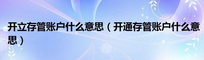大家好,小生來為大家講解下。開立存管賬戶什么意思,開通存管賬戶什么意思很多人還不知道,現(xiàn)在讓我們一起來看看吧!