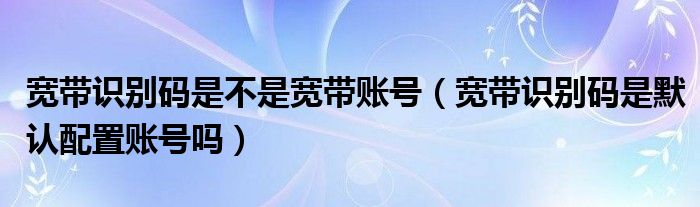 大家好,小生來為大家講解下。寬帶識別碼是不是寬帶賬號,寬帶識別碼是默認配置賬號嗎很多人還不知道,現(xiàn)在讓我們一起來看看吧!
