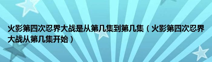 大家好,小生來為大家講解下。火影第四次忍界大戰(zhàn)是從第幾集到第幾集,火影第四次忍界大戰(zhàn)從第幾集開始很多人還不知道,現(xiàn)在讓我們一起來看看吧!