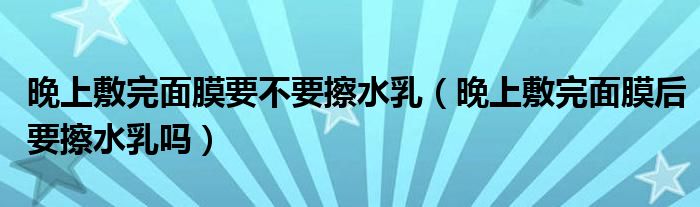 大家好,小生來為大家講解下。晚上敷完面膜要不要擦水乳,晚上敷完面膜后要擦水乳嗎很多人還不知道,現(xiàn)在讓我們一起來看看吧!