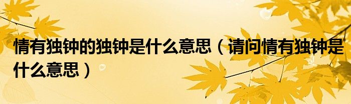 大家好,小生來為大家講解下。情有獨鐘的獨鐘是什么意思,請問情有獨鐘是什么意思很多人還不知道,現(xiàn)在讓我們一起來看看吧!