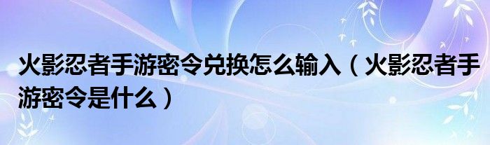 大家好,小生來(lái)為大家講解下?;鹩叭陶呤钟蚊芰顑稉Q怎么輸入,火影忍者手游密令是什么很多人還不知道,現(xiàn)在讓我們一起來(lái)看看吧!