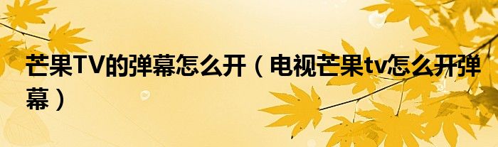 大家好,小生來為大家講解下。芒果TV的彈幕怎么開,電視芒果tv怎么開彈幕很多人還不知道,現(xiàn)在讓我們一起來看看吧!